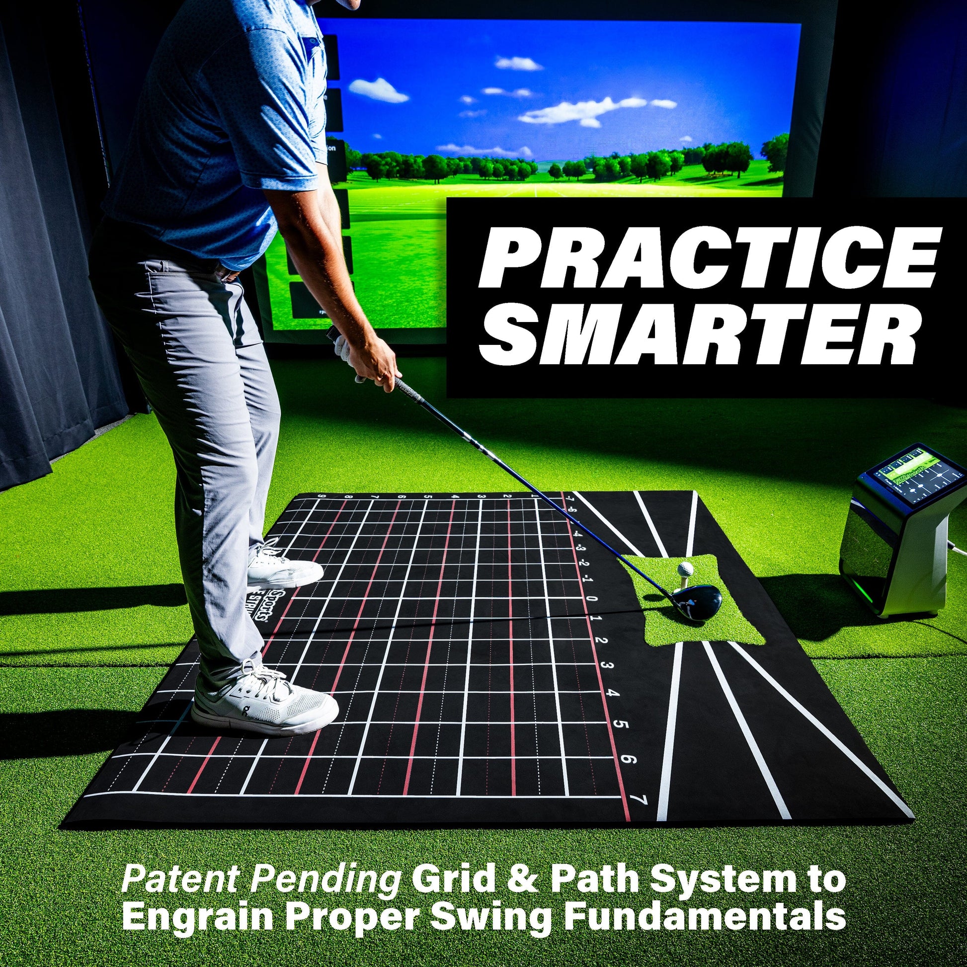 PRACTICE BETTER: Patent pending hitting mat teaches you the correct stance, ball position and swing path for a better golf swing
